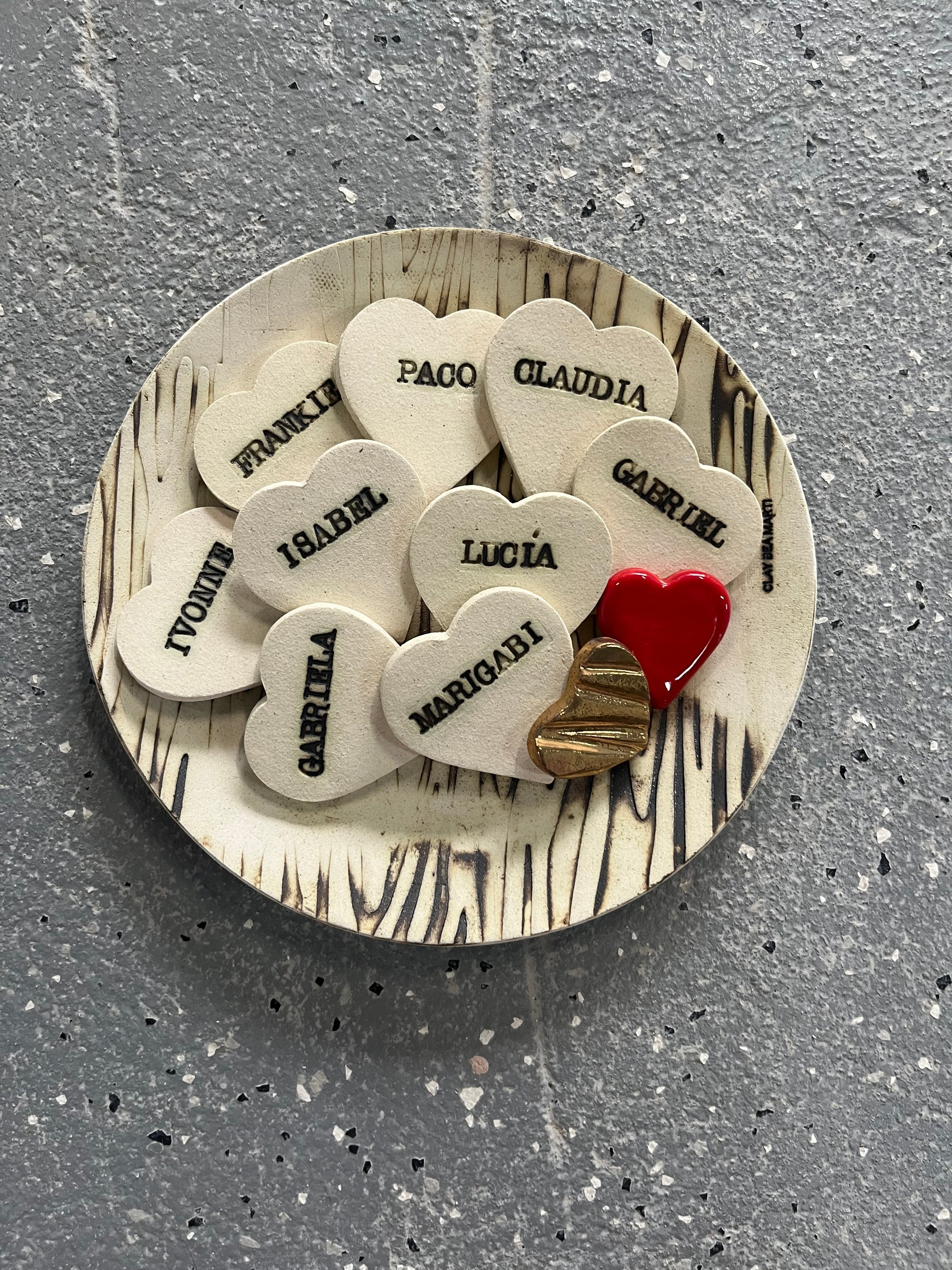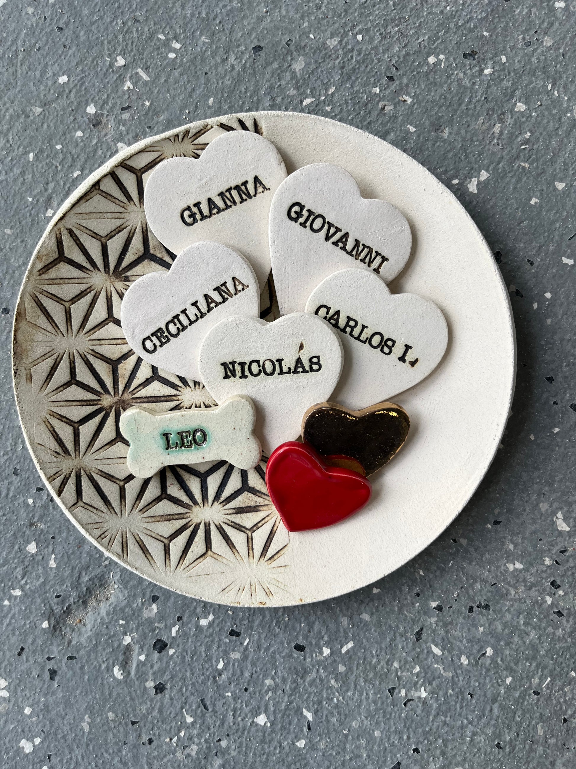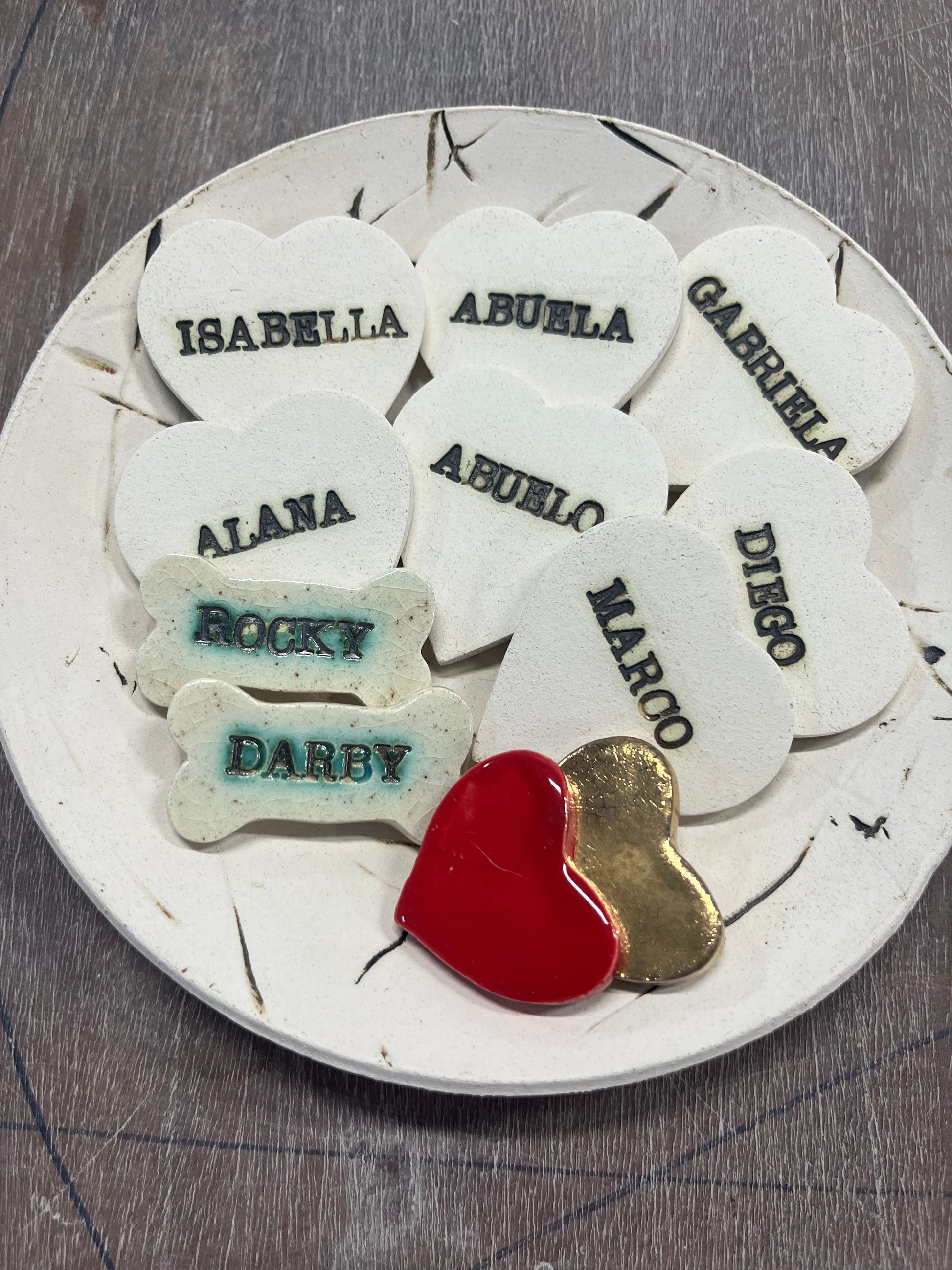 All Family Member name charms come in our heart shape. Leave a note at checkout for specific requests. If the Family Member is a pet, please identify as (dog) or (cat) after the name.